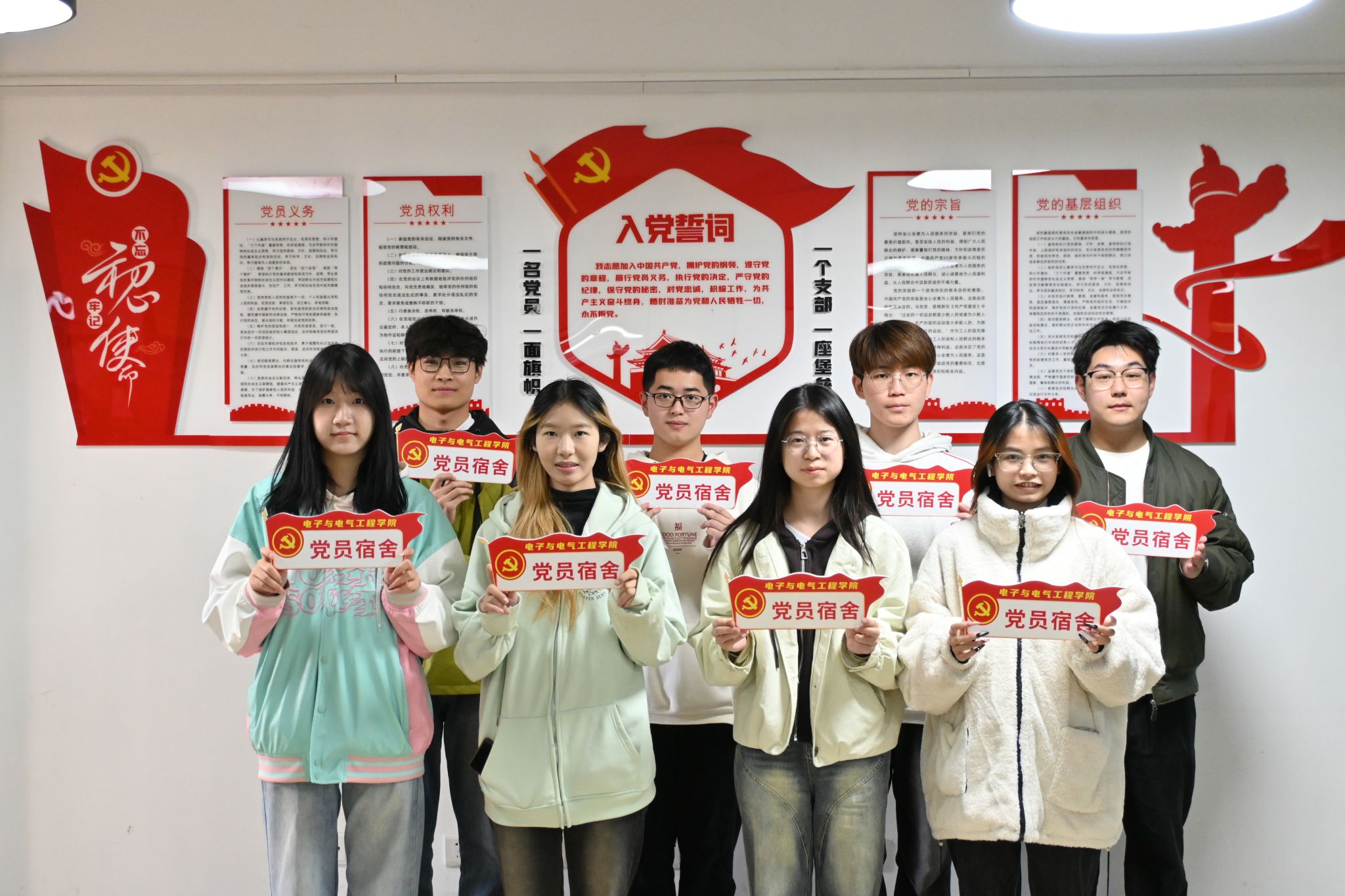 为进一步强化学生党员身份意识,充分发挥先锋模范作用,11月28日,必赢bwin网址大全在“电燃梦想”一站式学生社区开展“党员宿舍”挂牌活动。本次活动以党的二十大精神为指引,以党员寝室为“先锋阵地”,旨在推动党建育人阵地向学生社区延伸,营造互帮互助、积极向上的社区氛围。