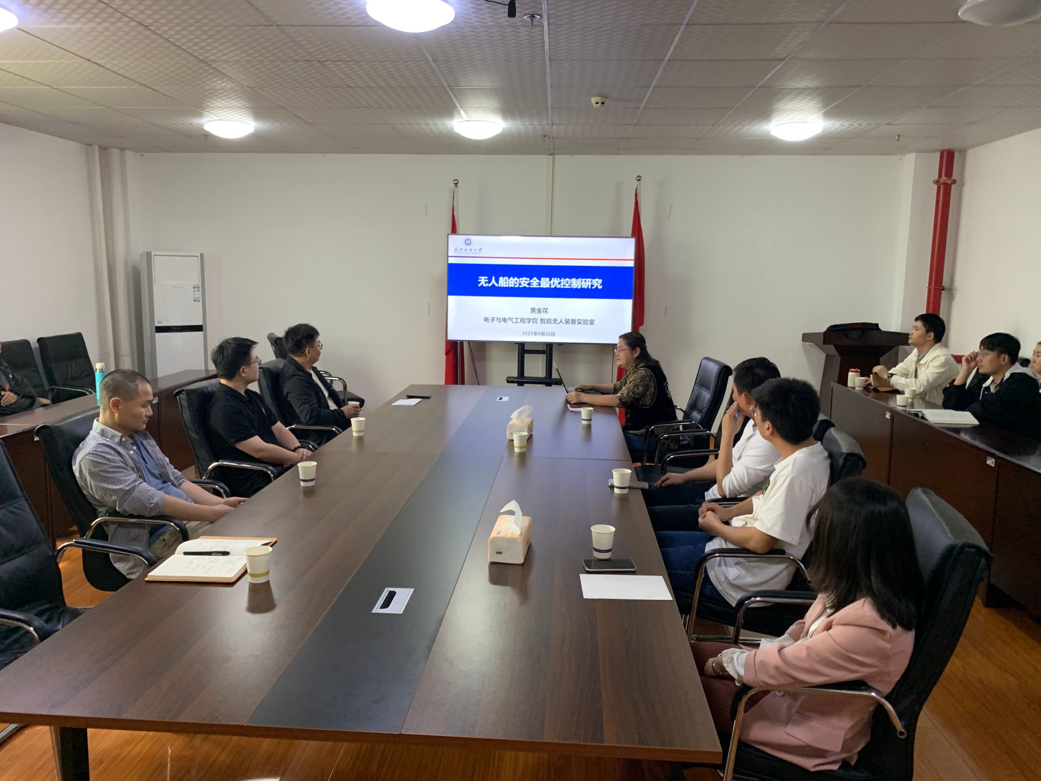 会上,二级教授周国鹏作了“低空经济背景下无人自主系统的智能控制与应用研究”的报告,二级教授黄金花作了“无人船的安全最优控制研究” 的报告,25年引进的副教授黄琴琴作了“从fNRBC分离到耳聋基因诊断:研究与产业化探索”的报告;学科带头人方国家教授作了“钙钛矿电池中的光调控与稳定性” 的报告,新晋教授陶晨作了“正置钙钛矿太阳能电池的埋底界面”的报告,新晋副教授姚方“钙钛矿蓝光LED相调控研究”的报告。参加论坛的各位专家学者聚焦学科前沿问题或本人研究的课题内容开展学术报告。