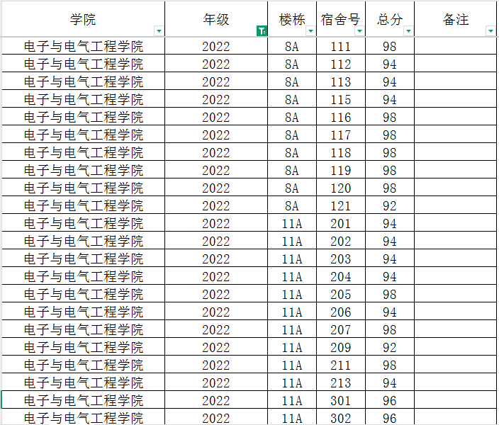 根据统一安排,现将学院本学期第10周寝室公检情况公布如下